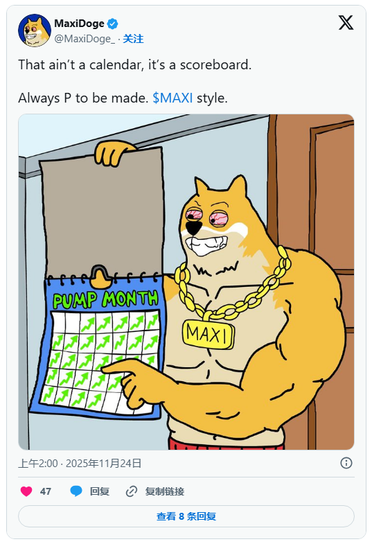 这也是为什么Maxi Doge最近总在各种聊天里被反复提起——它刚好踩中当下投资者的审美:更大、更吵、更有统治力。DOGE打下的是“江湖地位”,但一只体型更夸张的狗,可能正在热身准备抢镜接棒。