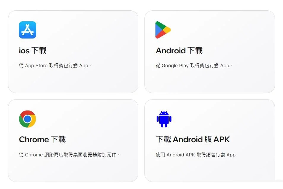 用户可以通过IOS(App Store),安卓端(Play Store),Chrome浏览器扩展程序,Android APK包等下载并安装Trust Wallet。请确保下载的是Trust官方应用程序,以保障资金安全。