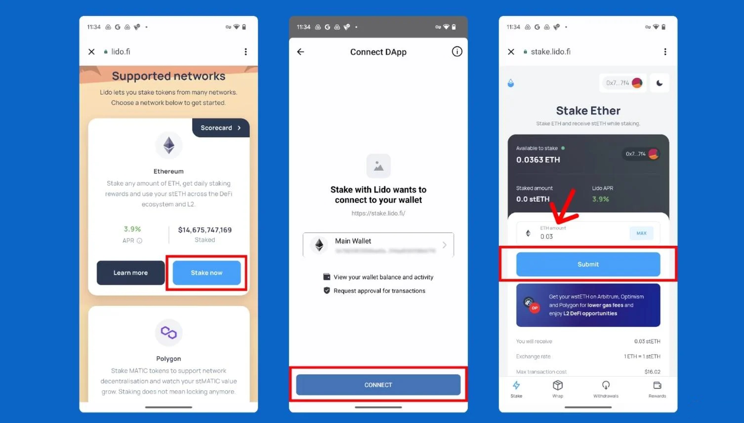 首先:连接到 Lido DApp