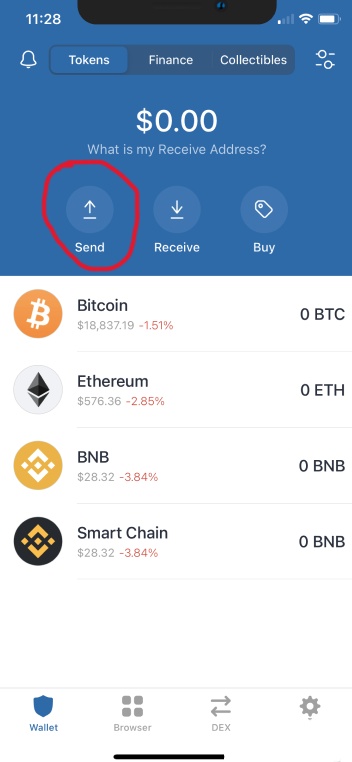 进入Trust Wallet钱包首页,点击“Send”即转账按钮。