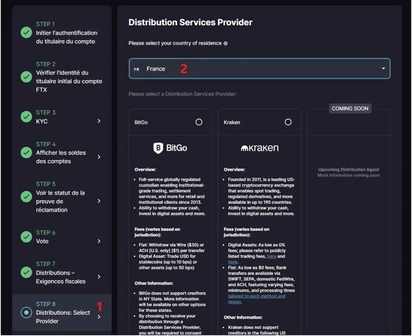 ❗ FTX 赔偿程序已经开始,为了获得首批还款,债权人必须在1 月20 日前完成税 务表格提交、选择并成功注册分配服务提供商。未在截止日期前完成要求的债权人将无法在初始分配日获得分配,但可在后续月份收到补发。