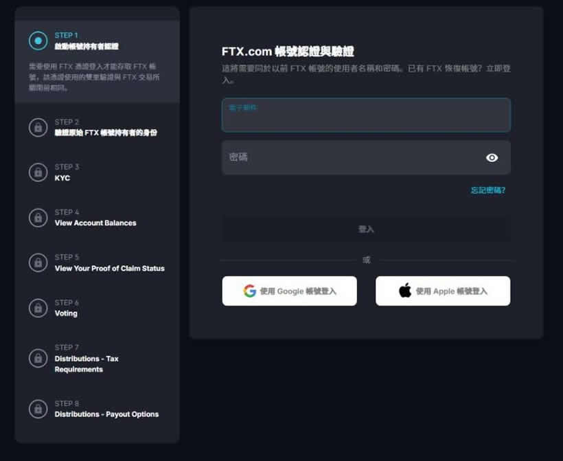 步骤一:进入FTX 客户索赔入口网站 Claims.ftx.com,认证帐号。