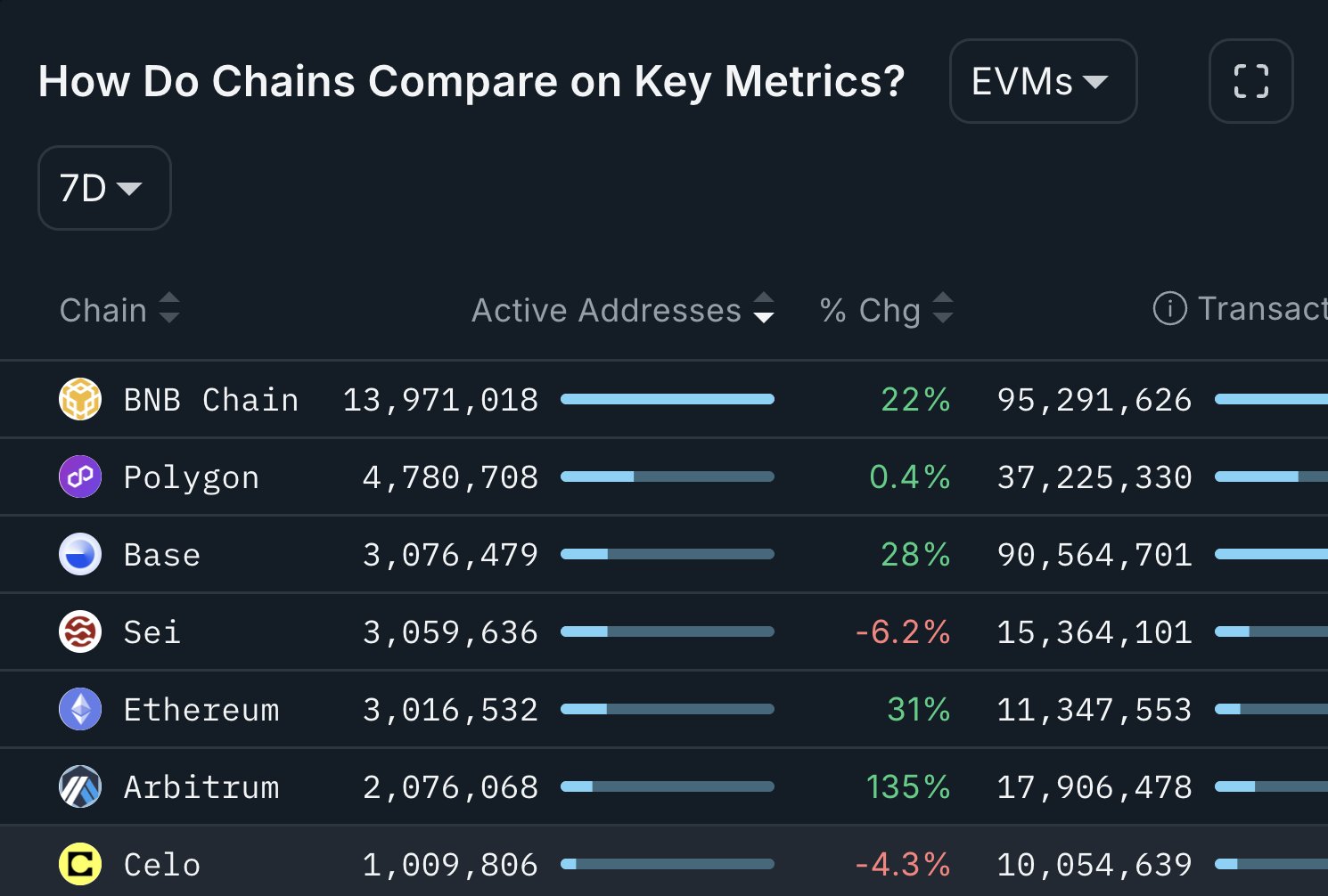● Arbitrum与其他EVM链相比,网络活动如何?