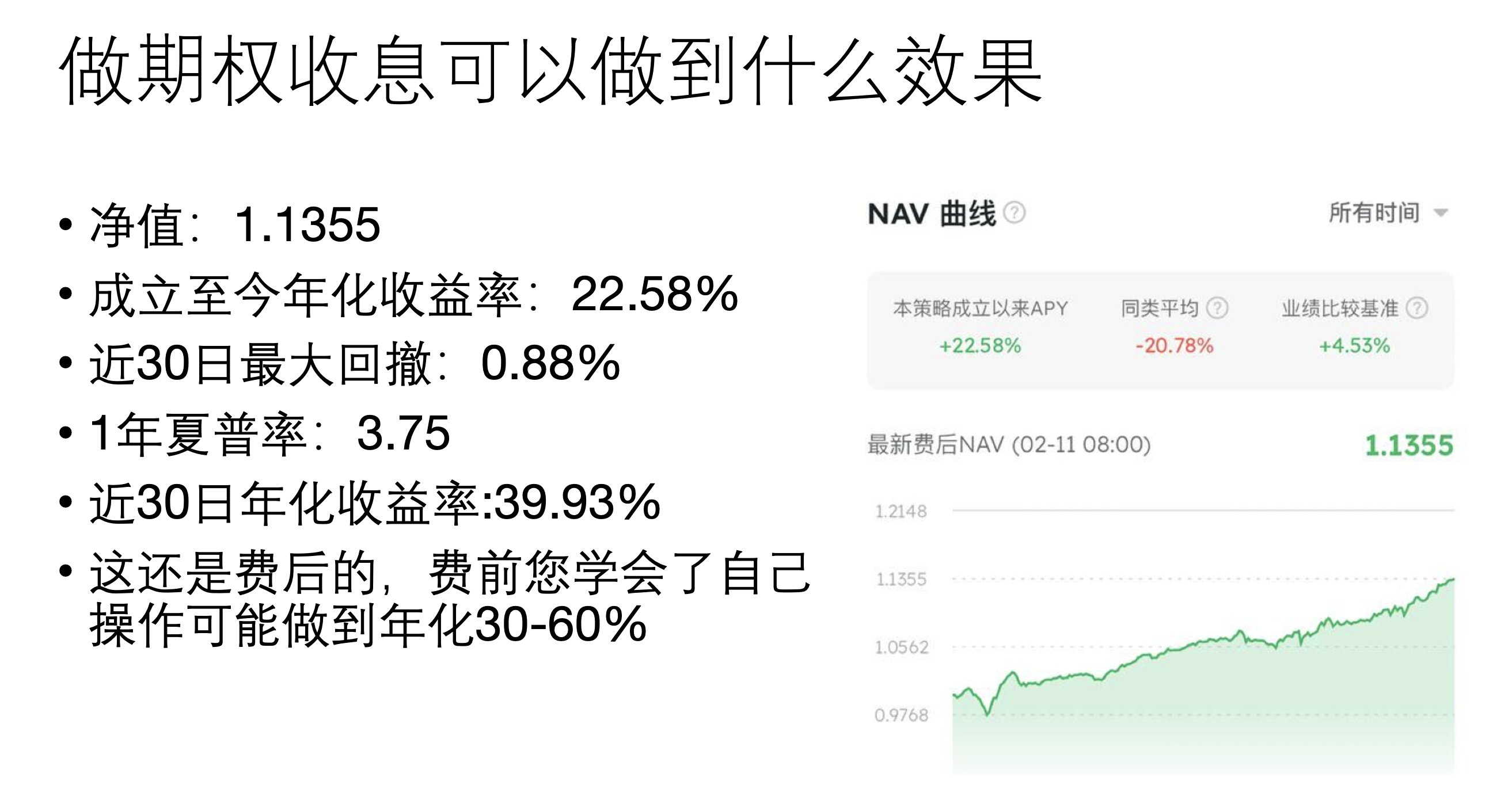 利用组合策略(如“备兑看涨”),通过卖出期权赚取权利金,在低风险敞口下实现年化20%以上的收益。