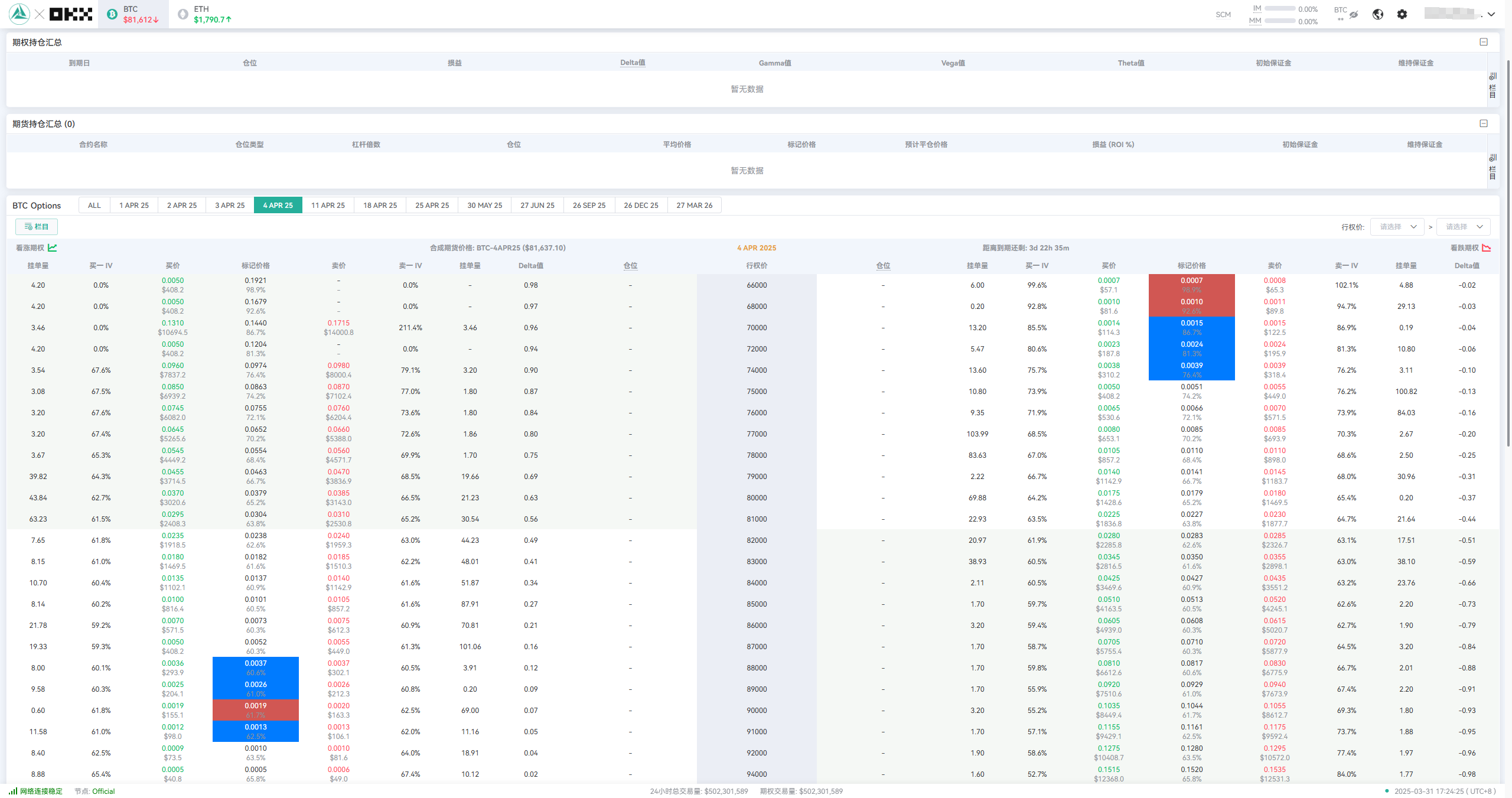 ● 加密期权产品:一般为欧式期权标准化合约,提供BTC和ETH的看涨看跌期权,支持作为卖方交易,拥有灵活的行权价与到期日选择,用户能够根据市场情况制定多样化交易策略。