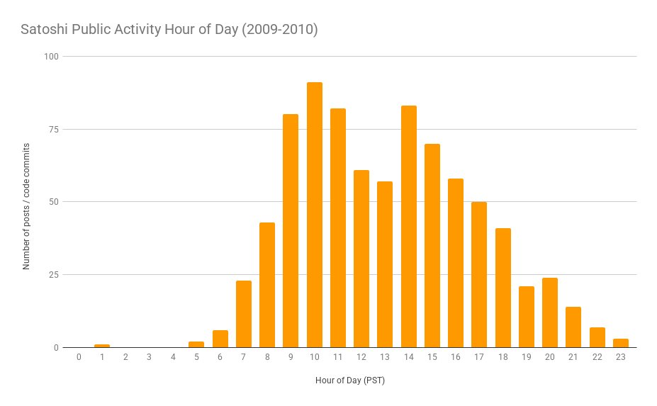 洛普还指出,中本聪的在线活动表明他有固定的太平洋时区作息时间。该时区的城市包括洛杉矶、旧金山、西雅图、温哥华和蒂华纳。