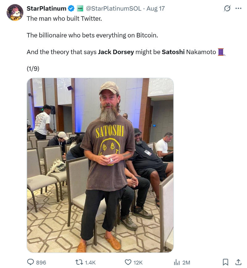 在事件发生期间,多尔西于2022年2月开始穿着印有中本聪头像的T恤。