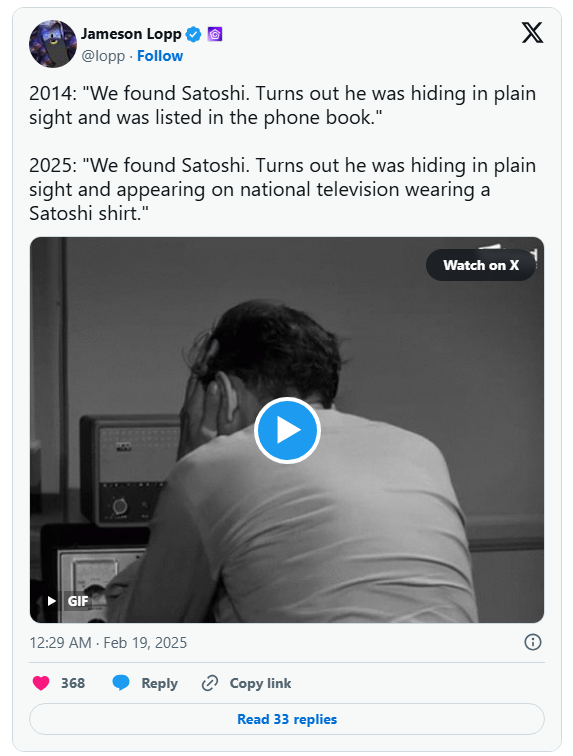 洛普在一篇博客文章中写道:“我发现所有证据加在一起,足以令人怀疑,一个理性的人会得出结论,中本聪更有可能是其他人。”