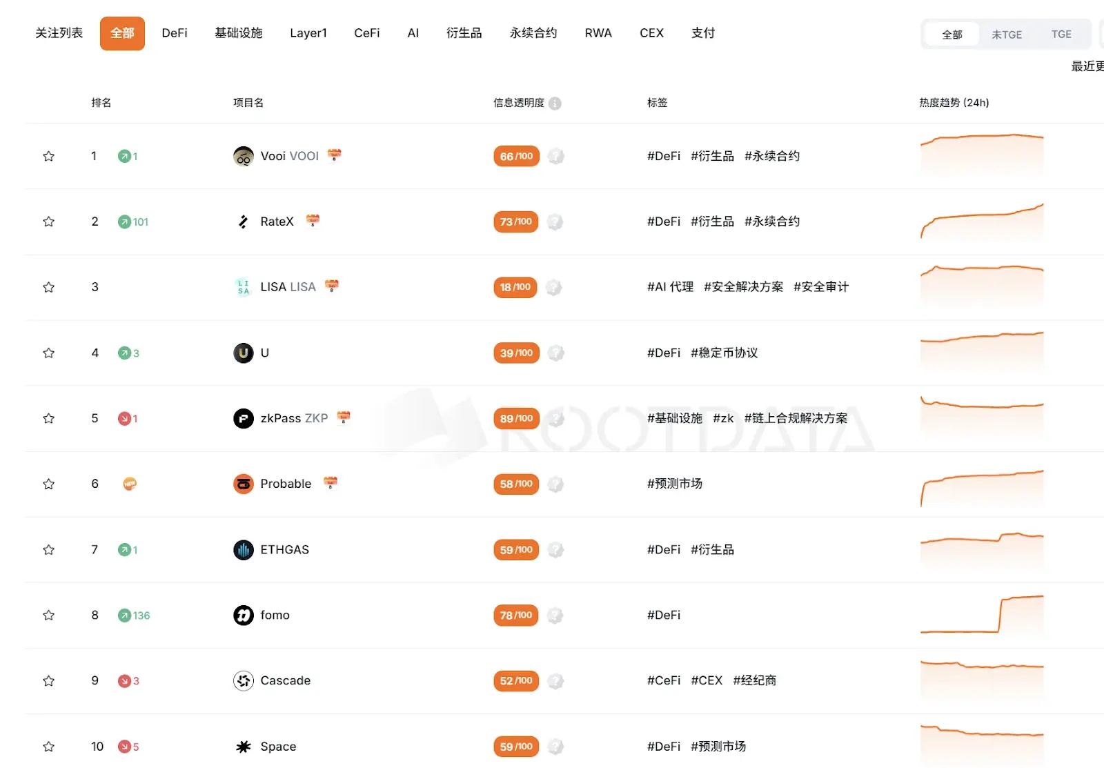 在实际应用中,透明度分数的价值,并不体现在短期价格预测上,而更多体现在长期信任度积累层面。对于普通用户而言,它提供了一种快速过滤机制,用于降低在信息严重不足或者慢性死亡项目中的暴露风险,结合RootData既有的热度指数、增长指数,将更多注意力引导至信息更加透明、发展潜力更大的项目。