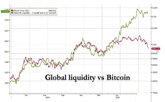 首先,Zerohedge的数据显示,“比特币上次这个价格时,全球流动性比现在低7万亿美元。”