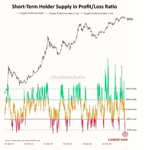 4、95%短期持有者处于亏损状态