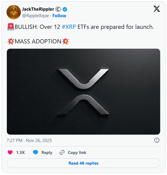 知名XRP倡导者JackTheRippler( RippleXrpie)最近发帖称,已有超过12只XRP ETF准备推出。该消息凸显了人们对以受监管的方式获取XRP的兴趣日益浓厚。随着ETF市场的扩张,投资者正密切关注。JackTheRippler的评论表明,这种扩张速度可能超出预期。