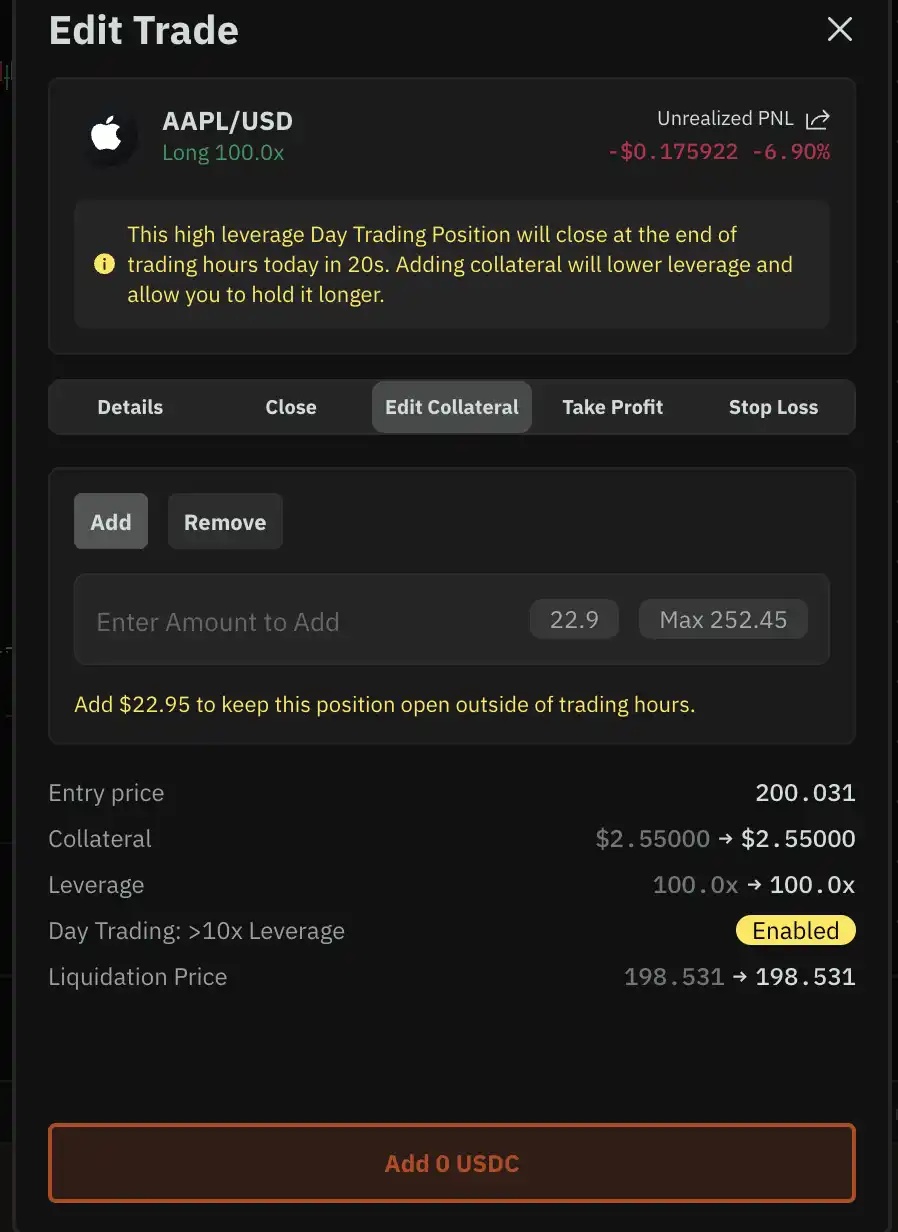 另外,虽然Ostium的杠杆倍数比较激进,能开到最高100倍杠杆。但这也只限于日内交易。一旦超过当日窗口或进入隔夜,杠杆要求就会被严格收紧。
