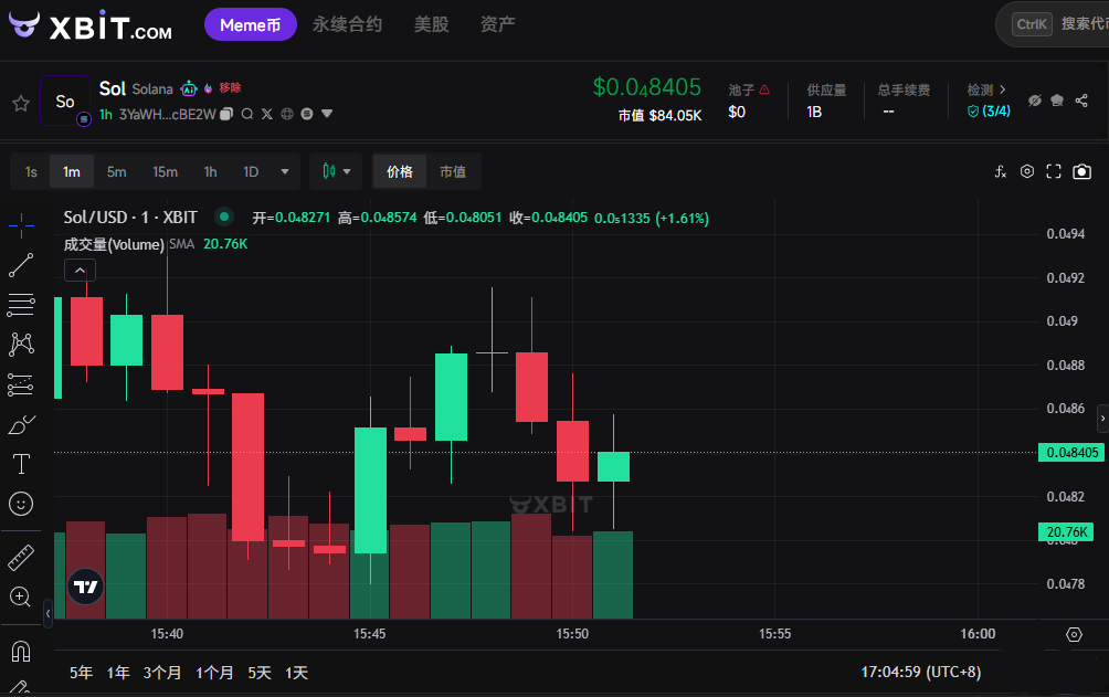 XBIT WalletSOL币实时走势,来源XBIT Wallet