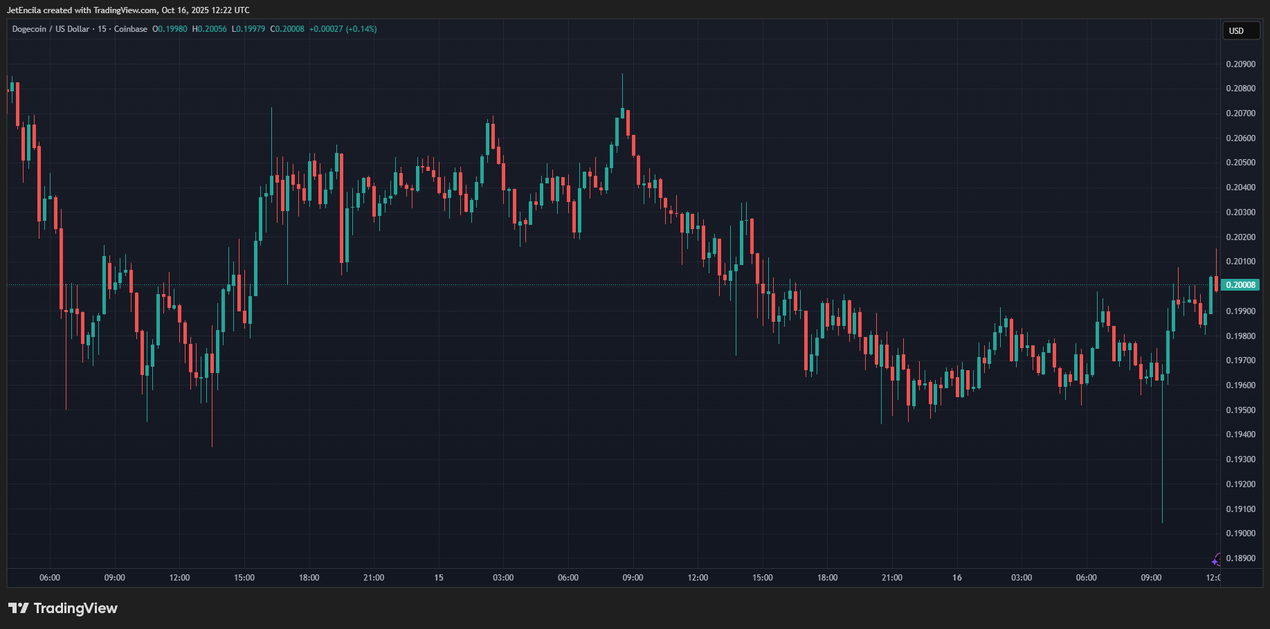 DOGEUSD当前交易价为0.20美元。图表:TradingView