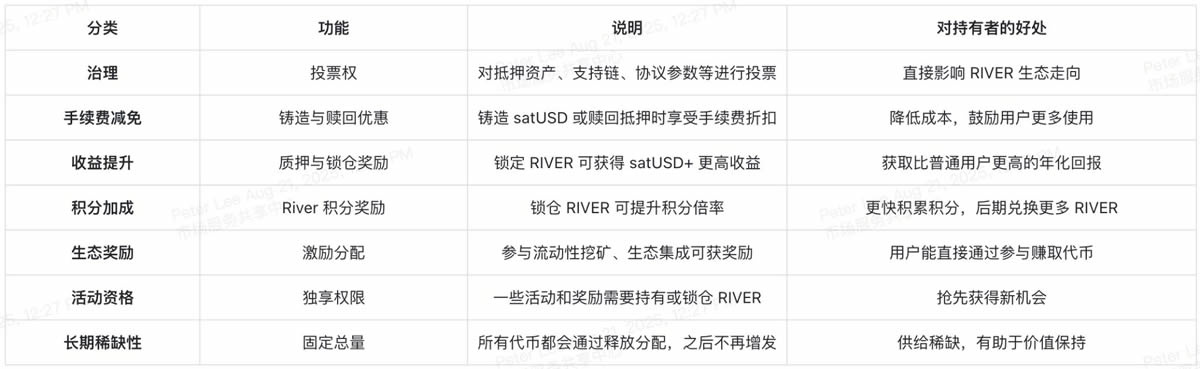 想象一下,如果有一个项目能把 比特币 和 以太坊 的流动性真正打通,你会不会立刻心动?这就是 RIVER 想要做的事。它正在搭建一个野心勃勃的生态系统,核心是 satUSD 稳定币 和它的升级版本 satUSD+(带收益的版本)。在这里,社区的互动不只是“热闹”,而是通过 River4FUN 转化为推动力;而 RIVER 代币 本身则赋予用户 治理权、手续费优惠,还有额外的 奖励加成。
