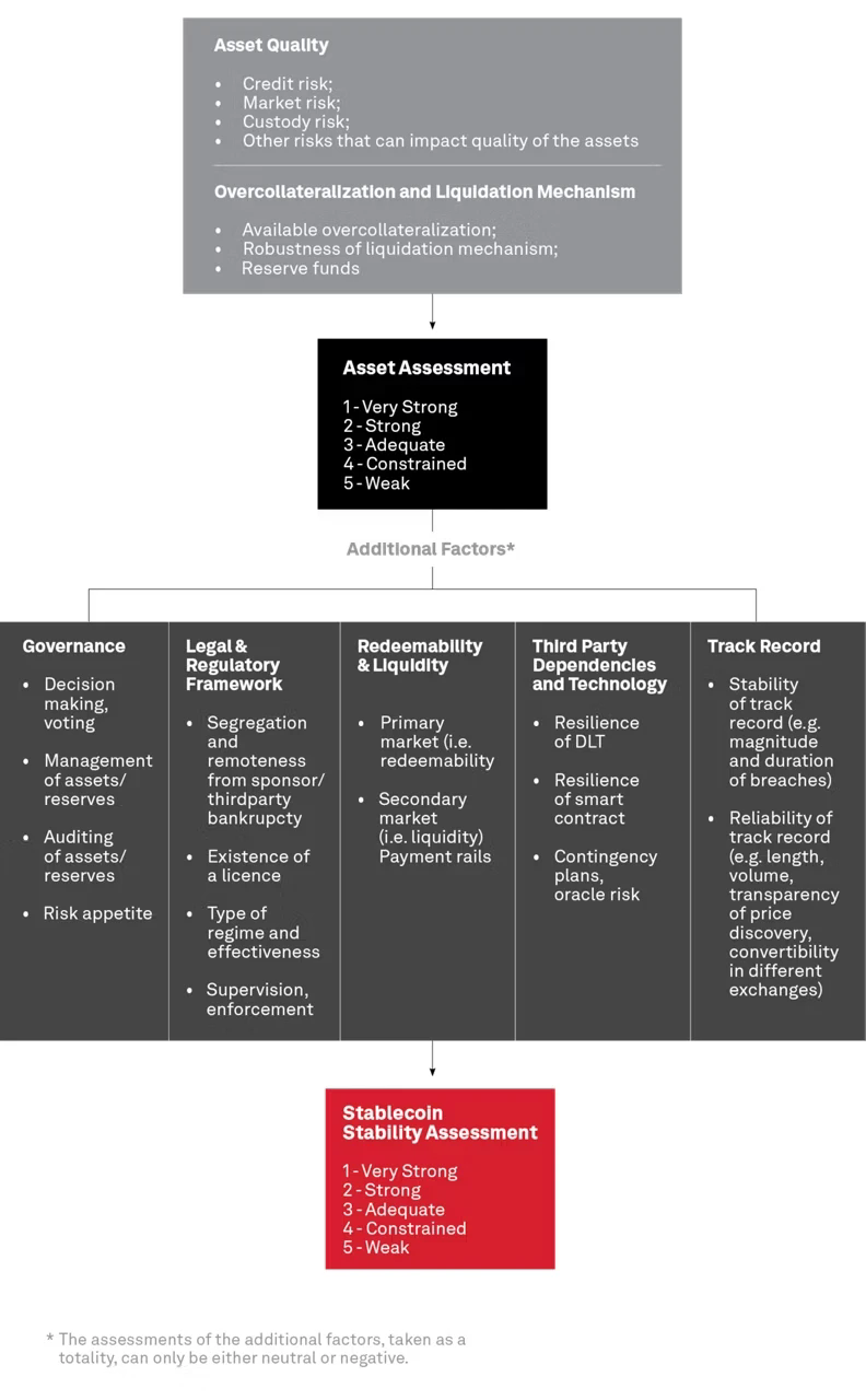 ● 在完成资产质量评估后,标普还将考量治理机制、法律与监管框架、赎回能力与流动性、技术及第三方依赖、历史记录等五个额外维度(下图深灰色框);