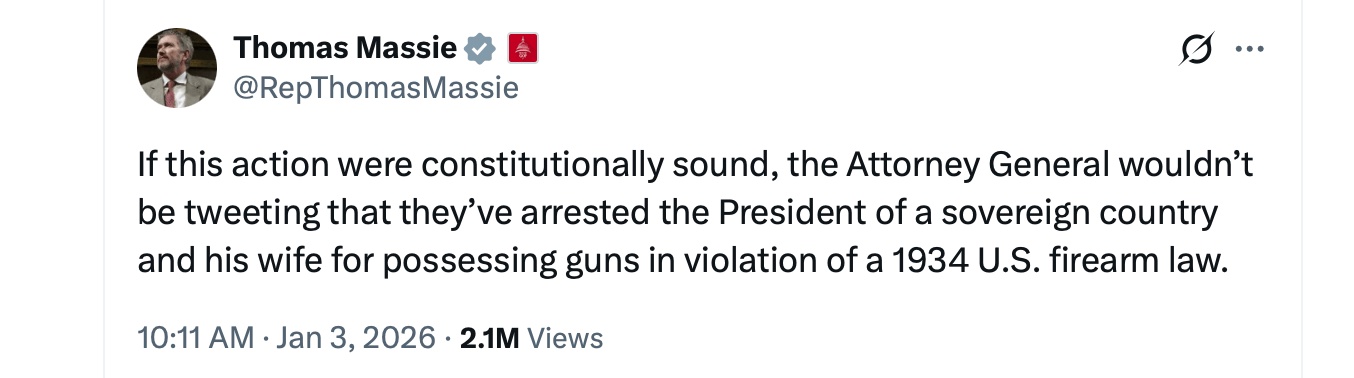 这次逮捕立即被拿来与1989年美国抓捕巴拿马领导人曼努埃尔·诺列加的行动进行比较,诺列加也是被美国指控以国家权力支持毒品走私网络的领导人之一。特朗普在他的讲话中也呼应了这一比较,称马杜罗是针对美国的犯罪组织中的核心人物。