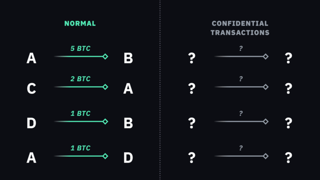 如果在比特币中应用保密交易,则可以打造隐私性更强的系统。系统中的输入和输出均会掩藏,账本中的实体也将被模糊处理,但节点仍可验证其真实性。随着隐私性显著提升,链分析无法揭示给定单位的历史,因此比特币可以有效互换。
