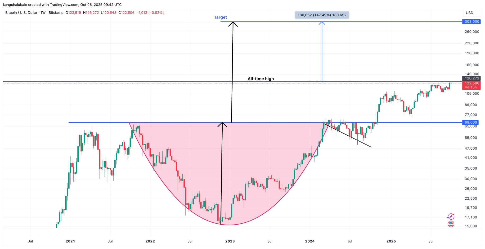 根据图表分析师Gert van Lagen的预测,这一突破的目标为2025年至2026年间约30.3万美元。