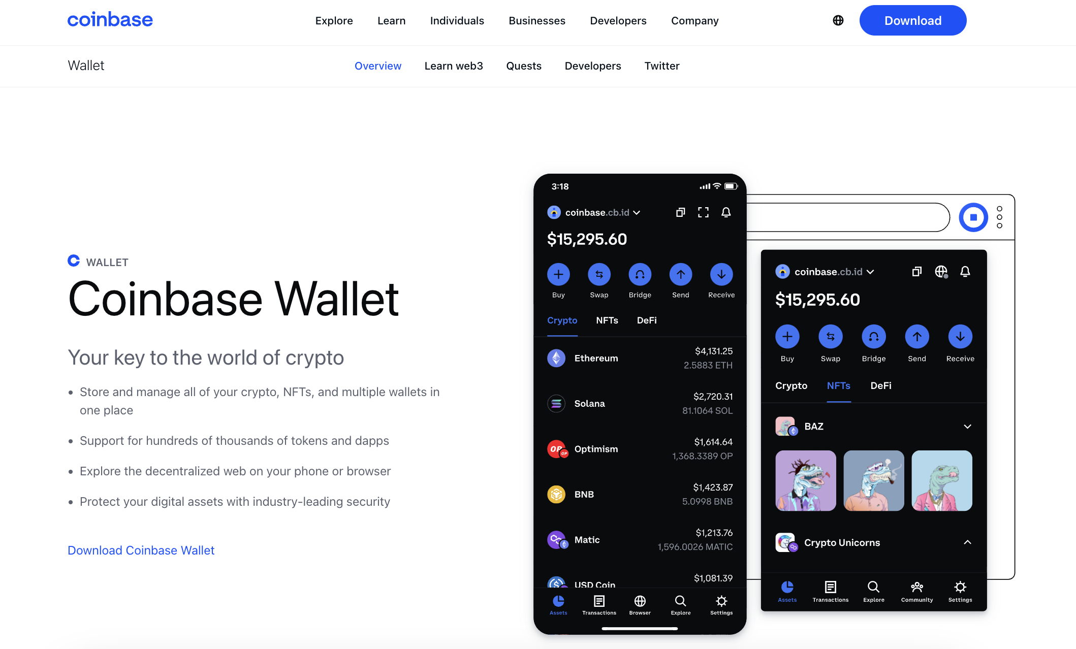 这就是您的私钥,没有人,包括Coinbase,可以访问它。另一方面,这意味着如果您遗失了私钥或钱包被黑客攻击,Coinbase将无法提供帮助。Coinbase Wallet作为移动应用提供,与iOS和Android兼容。它可以免费下载和使用,受PIN码或指纹识别保护。