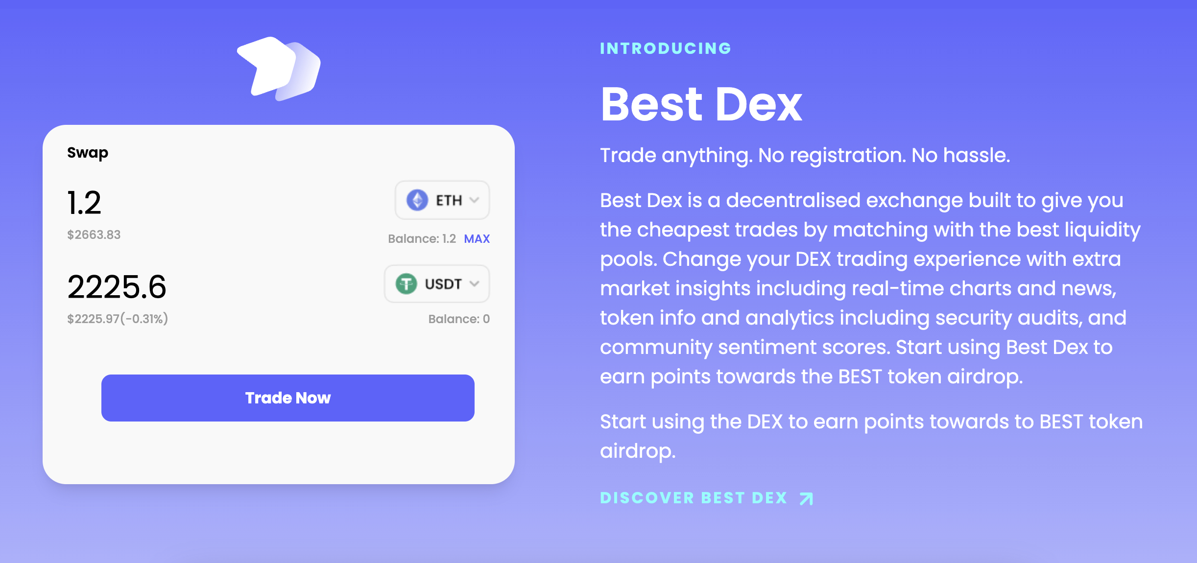 此外,Best Wallet还兼作一个去中心化交易所。这意味着您可以在不离开钱包应用程序的情况下交换代币。例如,假设您目前正在存储ETH。如果您想购买USDT,您可以立即将其与ETH互换,而无需支付任何佣金。尽管如此,您需要支付一定费用给流动性提供者。