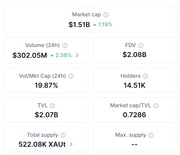 数据显示,到2025年第三季度,XAUT的市值将超过14亿美元;而随着10月份黄金价格攀升至每盎司4500美元,XAUT的市值也达到了21亿美元。CoinMarketCap报告称,Tether的数字黄金目前市值约为20.8亿美元。
