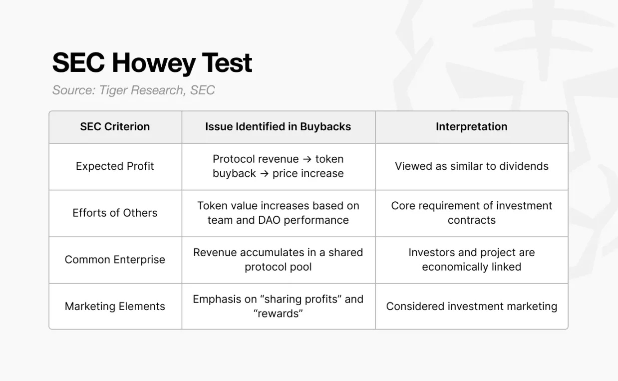 SEC并未将回购视为简单的代币经济机制。在大多数模式中,协议使用其收入回购代币,然后将价值分配给代币持有者或生态系统贡献者。在SEC看来,这类似于公司回购后的股息或股东分配。