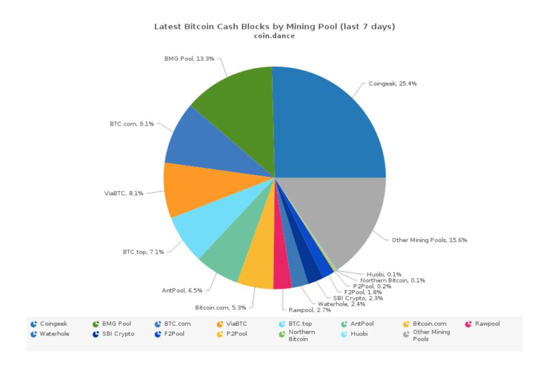 目前BCH第一大矿池Coingeek公开表示支持CSW,同时也有消息称比特币耶稣Roger Ver站队CSW。在过去7天中Coingeek算力达到了25.4%,Roger Ver的Bitcoin.com算力为5.3%,如果二者联手,算力将达到30.7%。而比特大陆的BTC.com和antpool算力达到了15.7%,加上ViaBTC和BTC.top算力可达30.9%。