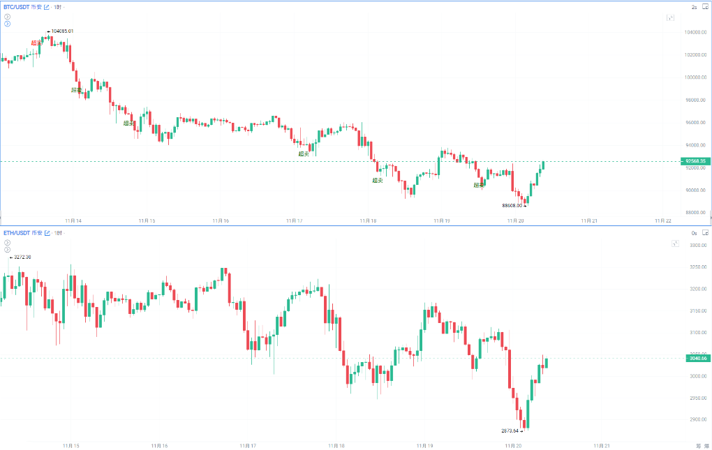 ● 在英伟达财报发布前,加密市场刚刚经历了一场“血洗”:比特币短线跌破9万美元,以太坊跌破2900美元整数位。