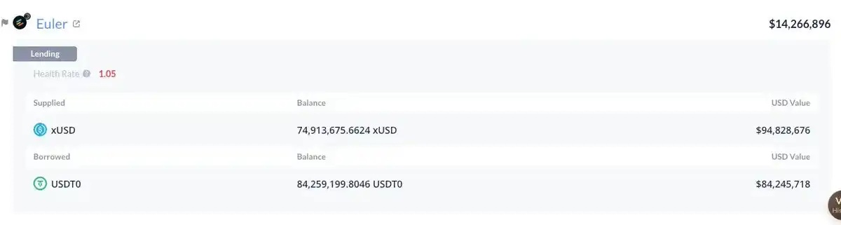 协议本身在这些市场中存在显著风险敞口,其中最大的一笔为在Plasma上以xUSD抵押借出的8400万美元USDT。