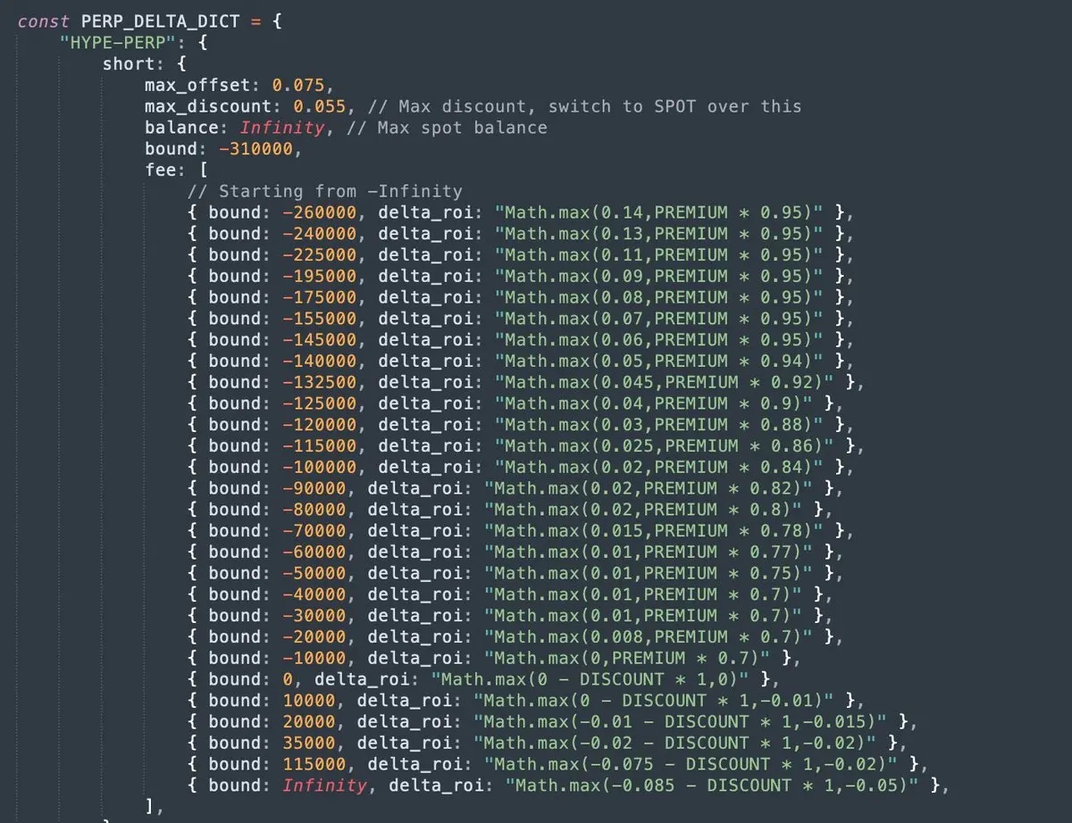 但我们后来注意到,HYPE 永续合约的成交量远高于现货,且手续费稍低(现货 0.0245%,永续合约仅 0.019%)。我们觉得可以尝试用永续合约优化策略。竞争对手目前都还没用永续合约,所以这部分市场流动性我们几乎是独享的。