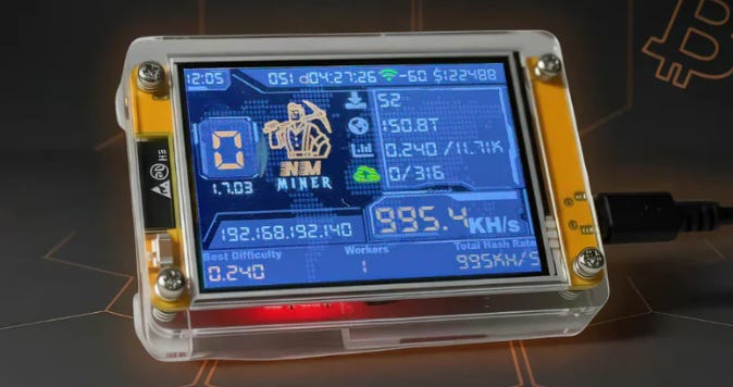 这款小巧的即插即用型矿机每十分钟就能让你有机会获得比特币奖励。它以低功耗全天候运行,是业余爱好者参与比特币挖矿的一种有趣且易于上手的方式。