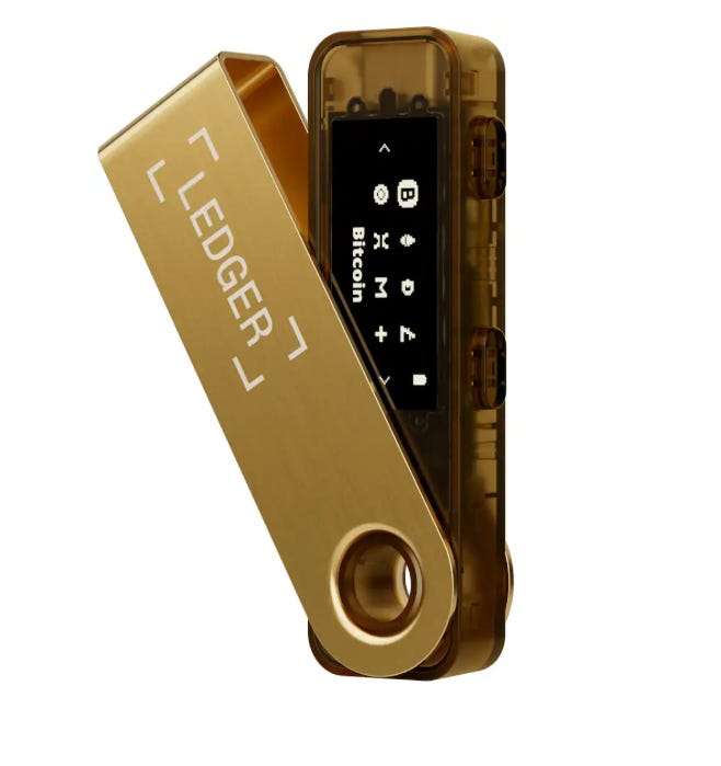 虽然不是最令人兴奋的礼物,但却必不可少。金属助记词备份可以保护您的恢复短语免受火灾、水灾和其他灾害的损害。大多数加密货币持有者都没有这种备份。正因如此,它才显得尤为重要。想送给一位非常特别的人?不妨搭配一个硬件钱包。