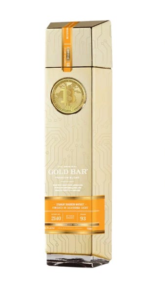 这款酒专为加密货币派对爱好者打造。它是一款纯波本威士忌,酒龄在5至14年之间,限量21,000瓶。瓶内镶嵌一枚金属比特币,象征着2100万枚的供应量。仅限21岁以上人士享用。