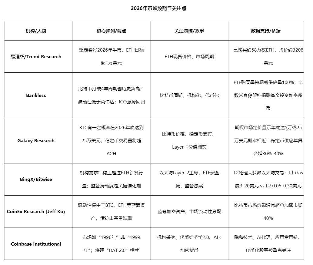 ● 常春藤盟校一半的捐赠基金将投资加密货币,美国将推出超过100只加密货币相关ETP产品。这些预测共同描绘了一个机构资金、监管框架和传统金融基础设施全面进场的一年。