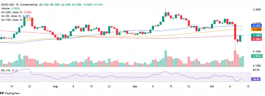 狗狗币24小时内上涨5%,现报0.206美元,交易量激增60%显示市场兴趣回升。分析师普遍认为0.19美元是理想的逢低买入位,下一目标看向0.23-0.29美元区间。相对强弱指数(RSI)支持价格反弹,投资者或在200日均线0.206美元附近建仓,推动15%涨幅至0.239美元。此外,灰度狗狗币ETF最终审批截止日为10月18日,Bitwise等机构的相关ETF申请也在等待SEC裁决。
