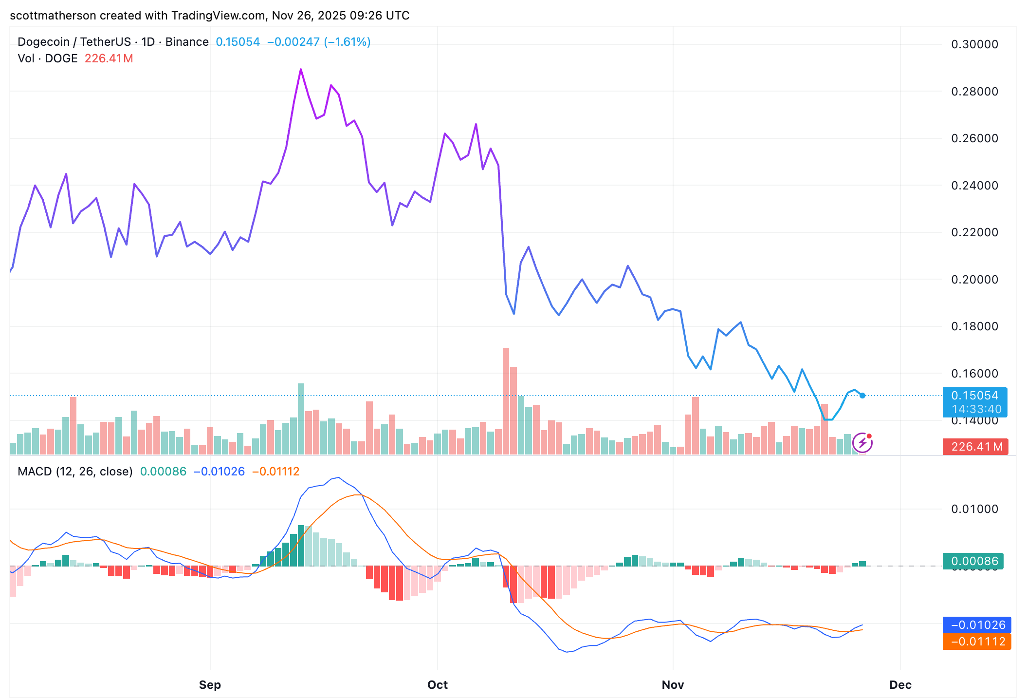DOGE交易价格为0.15美元(日线图)|数据来源:Tradingview.com上的DOGEUSDT