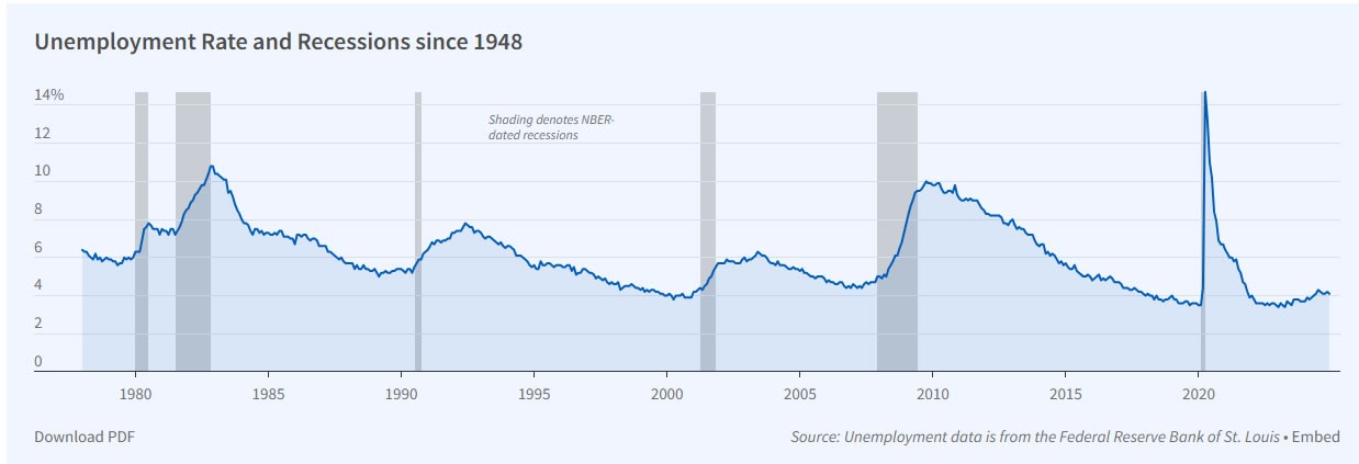 2001年的商业周期低迷,也被称为“互联网泡沫”,导致失业率上升,美国股市(标准普尔500指数)在两年内下跌了50%。这场泡沫的起因是估值过高的科技公司倒闭和过度投机。