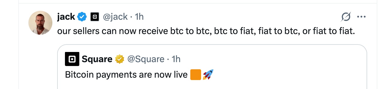该功能——称为比特币支付——直接集成到Square的销售点系统中,并使用闪电网络即时处理交易。商家可以选择以比特币或美元结算销售额,从而选择适合其业务的加密货币暴露水平。Square解释说,它通过2026年的0%处理费来增强交易,并将在2027年1月1日开始施行1%的固定费用。