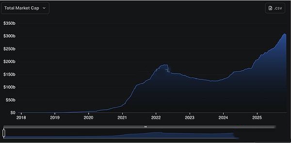 多年来,监管一直是行业的噩梦。如今,它终于被打破了。2024年和2025年出台的监管政策,为那些曾经被视为敌人的行业巨头们开了绿灯。稳定币供应量每天都在刷新历史新高,势不可挡。