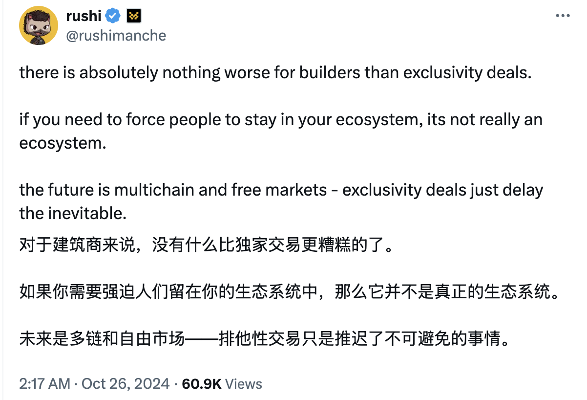Movement 联创曾在 X 上发文批评「独家协议」,似乎意有所指。