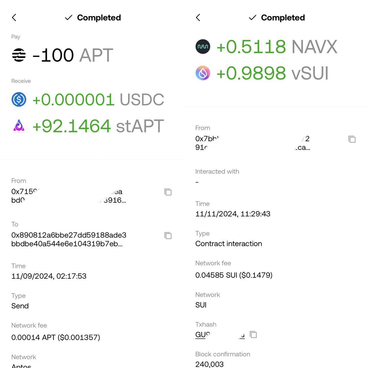 而在费用方面,Aptos 上所有类型的交互都保持着可以忽略的费用,而 Sui 在执行某些交易时 Gas 成本会偏高(如下图,在 Navi 领取 Rewards 花费 0.14 美元手续费)。Gas 费高还与合约代码质量相关,但明显 Aptos 综合成本更可控。
