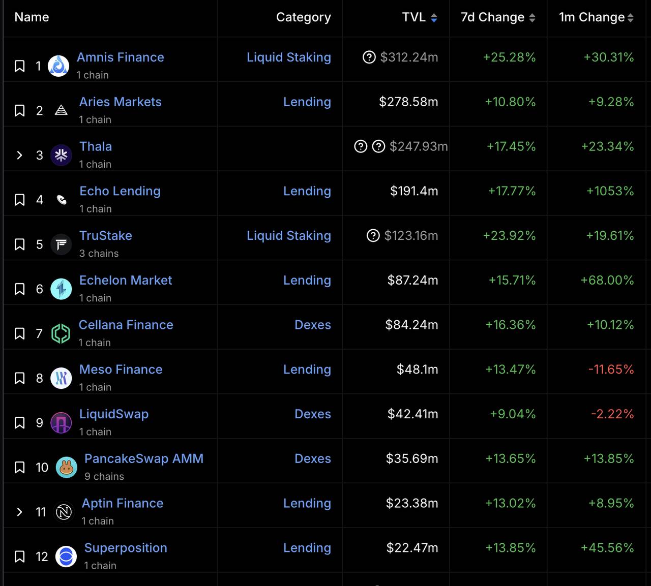 Aptos 生态项目,图源:DefiLlama