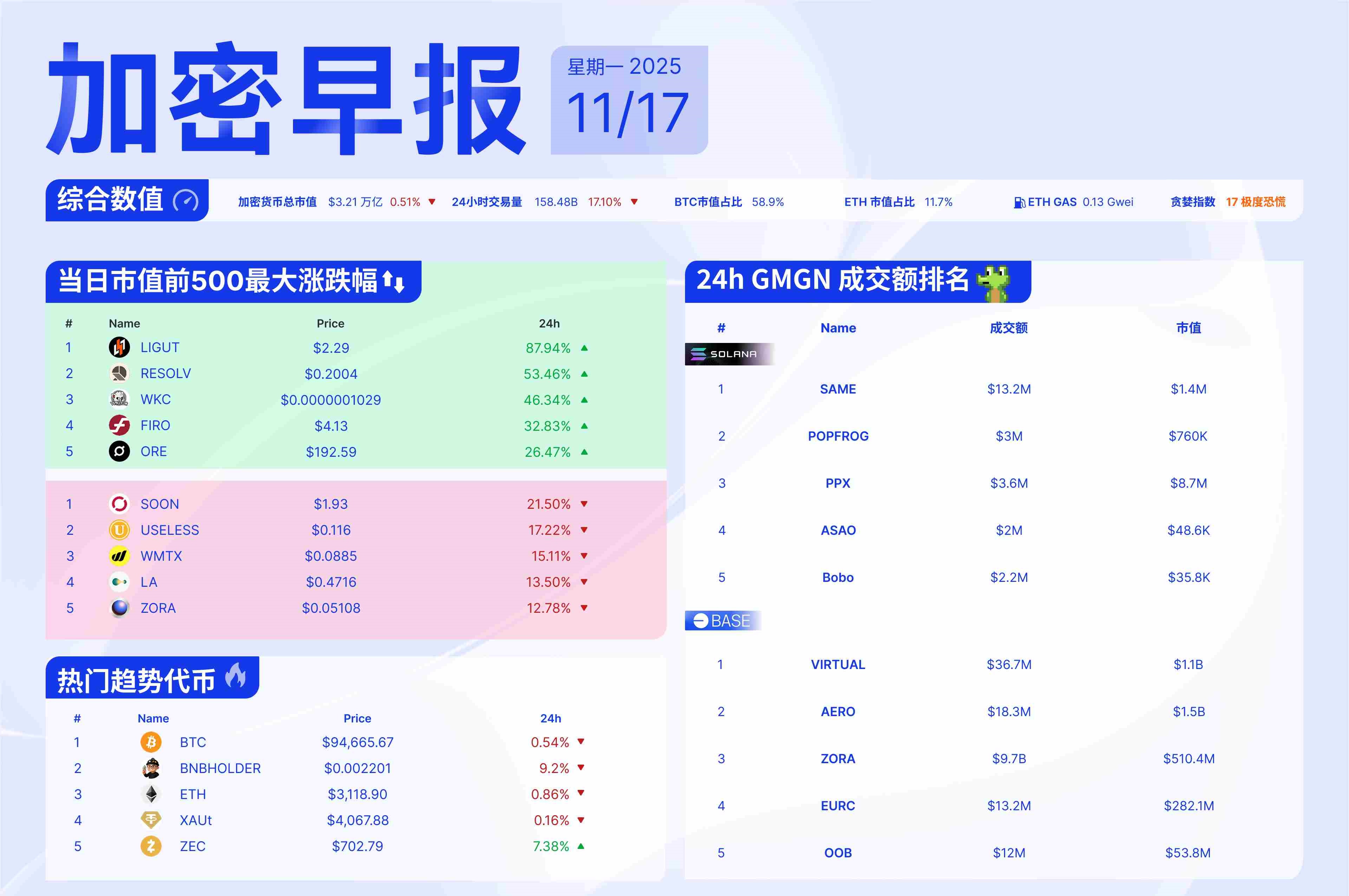 现货黄金突破4100美元/盎司,日内涨0.63%行情动态昨日市场动态● Tom Lee:BTC涨100倍,ETH或迎超级周期Bitmine董事会主席Tom Lee表示,比特币是一种高波动资产,2017年首次向Fundstrat客户推荐比特币时价格约为1,000美元,配置建议为1%-2%。过去8.5年间,比特币经历6次超过50%的下跌和3次超过75%的下跌,截至2025年,比特币价格较首次推荐时已上涨100倍。Tom Lee认为,要从这一超级周期中获利需坚持持有,并表示以太坊可能正在开启类似的超级周期。● Monad:MON代币销售将于11月17日开始11月16日晚,据官方公告,MON代币销售将2025-11-17