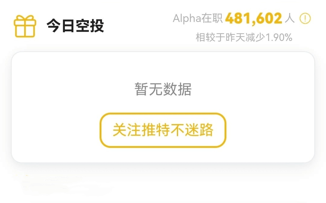【11月17日空投提醒】🚀币安Alpha,11月17日空投预告,竟然工作日挂零!还有48万在职!📅 11月17日(今天)1、挂零中,预计会有一个突袭,30-50U📅 11月18日(明天)1、Datagram Network(DGRAM)-空投实时通信DePIN,400万美元融资,总量100亿,初始流通量22亿(20%)。预计16:00上线,30-50U,235分左右,芝麻/BG,18:00上线。今天操作建议:1、继续建议刷AIO,BAY,TIM。我最近AIO刷的多点,一般都能控制在3-4U的损耗。现在还有48万+在职,离职的人员不算多,确定性的赚钱机会大家都不愿意错过!2、像昨天2万份的2025-11-17