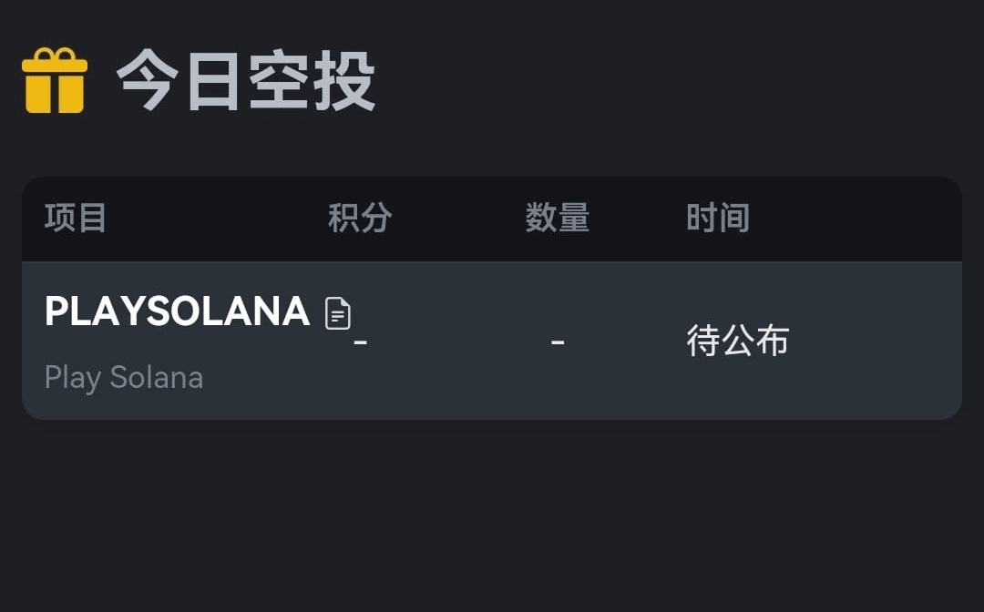 【11月14日空投提醒】🚀币安Alpha,11月14日空投预告,昨天50U咋样,恢复信心了吗?📅 11月14日(今天)1、Play Solana-预计30-50U小毛有意思的是真的做了硬件设备出来,接入Solana网络,社区预售价是0.02U,今天开盘0.03U的话不算过分。🎁 融资金额:500万美元⬆️🕒 上线日期:11月14日,待定💼 空投门槛:中高(225-231分)💰 项目总量:50亿💎 项目介绍:Play Solana正在Solana区块链上构建的手持式Web3游戏设备。它与区块链技术无缝集成,为下一代游戏玩家提供内置的安全硬件钱包、独家功能和革命性的游戏体验。2、Pl2025-11-14