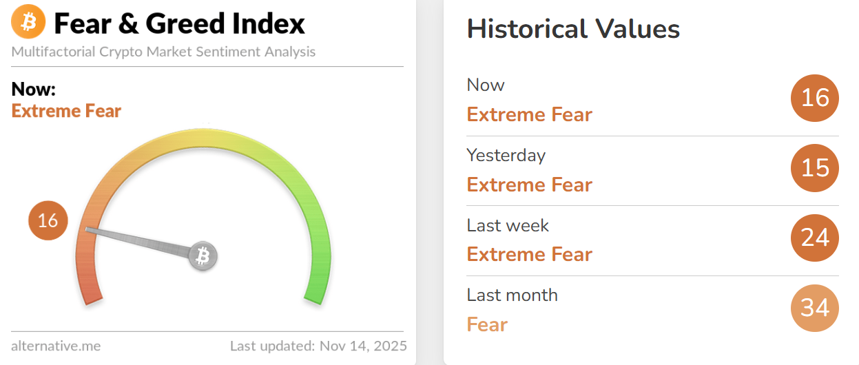 加密货币恐惧与贪婪指数暴跌至16:极度恐慌对您的投资组合意味着什么