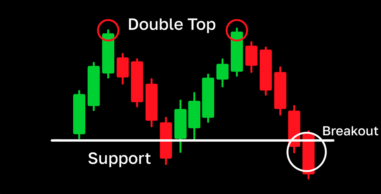 在加密货币市场进行交易是一种科学、艺术与心理学的结合。成功的交易者依赖技术分析工具来预测价格变动并找到最佳的进出点。在众多的图表模式中,“双顶”和“双底”占据了特殊的地位 —— 经典的反转形态,可以帮助识别趋势的变化。这些模式在加密货币市场尤其相关,因为高波动性为其形成带来了众多机会。什么是“双顶”模式?“双顶”是一个看跌的技术分析模式,标志着上涨趋势的反转,转为下跌趋势。在图表上,它看起来像字母“M”,由两个峰(顶)组成,位于相同的阻力水平,在一个修正分隔开,并以突破支撑水平的“颈线”作为完成。由于它们的动态特性,这种模式通常出现在比特币(BTC)、以太坊(ETH)或在MEXC上交易的山寨币2025-08-21