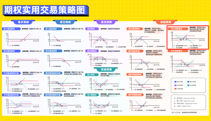在加密市场不断扩张的背景下,期权交易正逐渐从专业小众工具走向更广泛的应用场景。无论是比特币、以太坊,还是热门山寨币,投资者都可以通过多种策略管理风险、锁定收益或对冲波动。本文将盘点十种常见的期权交易策略,从简单的买入看涨、看跌,到复杂的蝶式、跨式组合,帮助投资者在瞬息万变的市场中理解操作逻辑、收益风险特征,并做出更明智的投资决策。十种常见的期权交易策略1️⃣ 多头看涨期权(Long Call)● 策略描述:购买看涨期权,允许在到期前以特定行权价买入标的资产。● 适用市场:强烈看涨行情● 收益/风险:最大亏损为权利金;收益理论无限● 备注:高杠杆、成本低,但时间价值衰减快2️⃣ 多头看跌期权(L2026-01-04